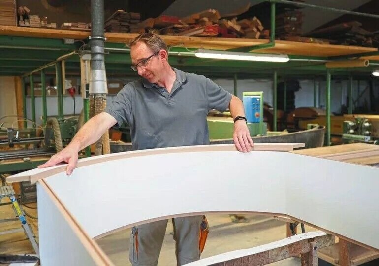 Neumann is happy to bear the responsibility for his 13 employees and for the continued existence of the traditional company, even if it is not always easy. “There's always a bit of fear in the skilled trades, and I think that's also the reason why some colleagues don't invest properly,” Neumann suspects. “Everyone knows that something has to be done, but you always go through ups and downs because you simply don't always have long planning cycles. It's not as if major contracts just line up one after the other.” But sometimes, just one of them is enough to make the decision to invest easier. For Neumann, this was recently the contract to fit out a large local hotel. High-quality interior finishing, hotel-appropriate furniture in solid walnut, and fine furnishing details such as custom-designed coat hangers are currently generating respectable sales in the mid-six-figure range.