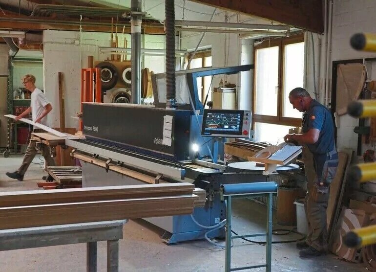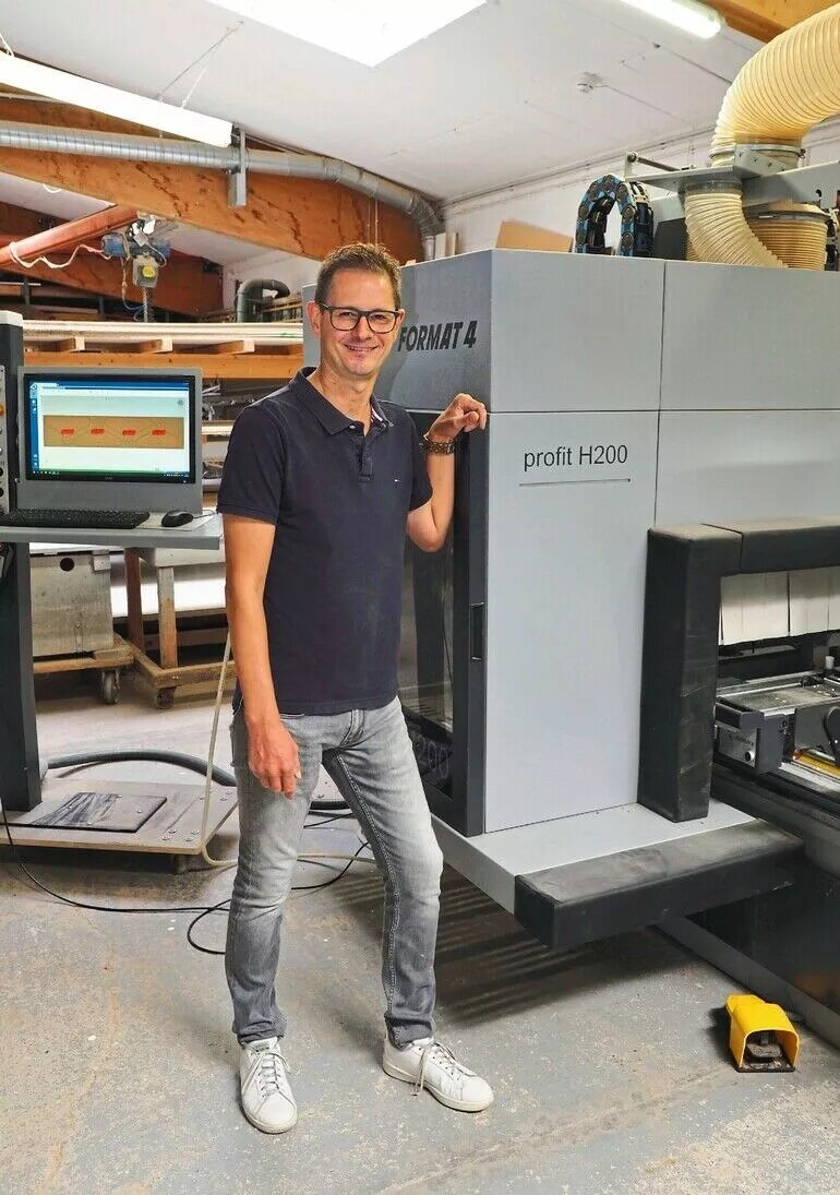 This gave Neumann the security to invest in a 4-axis Profit H200 CNC machining center from the Felder brand Format 4, which, thanks to the major contract, he could not only finance but also urgently needed. “For me, this CNC is the first major investment I've made since buying the joinery,” explains Neumann, who seized the opportunity and also negotiated a good price with Felder for a Tempora F600 edgebander. The two new acquisitions complement a machine park that also includes, among other things, a vertical panel saw from Striebig, a band saw from Panhans, a pendulum saw and a jointer from Bäuerle, a thickness planer and two spindle moulders from Martin, a wide-belt sander from Bütfering, a long-belt sander from Heesemann, a veneer guillotine from Josting, a veneer press from Ott, and three sliding table saws from Altendorf. The fact that his machine park largely features brands from his company's home region of East Westphalia has a lot to do with the deep roots of the more than 100-year-old business in the region. But Neumann, who now has clients from the North Sea to the Lower Rhine, naturally looked beyond the region in his search for a CNC machining center suitable for his business: “Ultimately, a personal recommendation from an acquaintance that the Felder machine was exactly right for my needs, the good advice from Felder, and the price-performance ratio were the deciding factors.”
