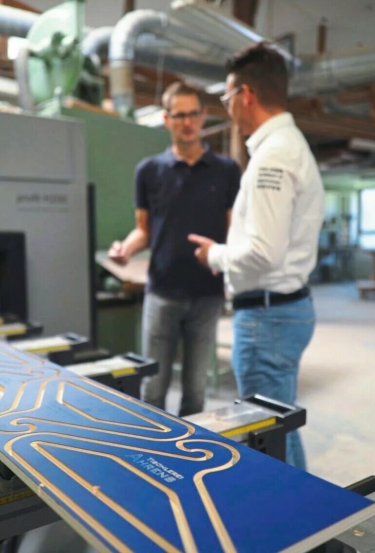 Centenarians are often asked what the secret to a long life is, and the answers aren't always convincing—after all, who wants to go to bed early or only drink still water? But there is something else that repeatedly comes up as a key to a long life: staying curious! This is also how the Ahrens joinery in Rietberg, East Westphalia, has mastered a century with a passion for new challenges. A good seven years ago, wood technology specialist Christian Neumann took the helm of the traditional joinery from the last generation of the Ahrens family, and ever since, he has ensured that there is always a hand's breadth of water under the keel.