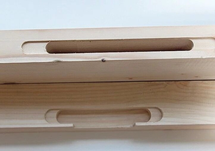 Pour le tourillonnage sur la Creator et l'encollage souvent critique, les frères Hoffmann ont découvert une autre solution pratique après de nombreux essais. Des tourillons dotés d'un revêtement réactif en PUR résolvent le problème de l'encollage des trous de tourillons. Au lieu de la colle, seule une quantité définie d'eau est injectée dans les trous de tourillons. Le revêtement PUR réagit avec l'humidité et assure un collage sûr des tourillons. Klaus Hoffmann apprécie particulièrement cet avantage : « Fini les salissures dues aux résidus de colle sur la machine, et toute l'opération de nettoyage de la station de tourillonnage est supprimée. »