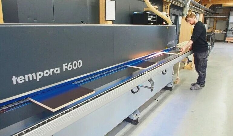 En 2021, Quadrat P a investi dans une combinaison de stockage et de nesting, composée d'une CNC de nesting 4 axes Format4 Profit H100 et d'un magasin Barbaric CSF. Depuis mai 2023, une plaqueuse de chants Format4 Tempora F600 60.06L entièrement équipée de la technologie GlueBox est également en service. La GlueBox applique une fine bande de colle PUR en rouleau entre le chant et la pièce, puis fusionne les deux composants. L'activation thermique de la colle garantit une adhérence et un collage optimaux. Cette technologie rend le bac à colle et la maintenance associée superflus. Au cours des premiers mois, plus de 5 000 mètres linéaires de chants ont déjà été plaqués sur la machine avec la colle PUR en rouleau. La qualité du joint est irréprochable. De plus, la Tempora dispose d'un bac à colle thermofusible interchangeable en quelques gestes, qui peut être utilisé sans problème en alternance avec la GlueBox.
